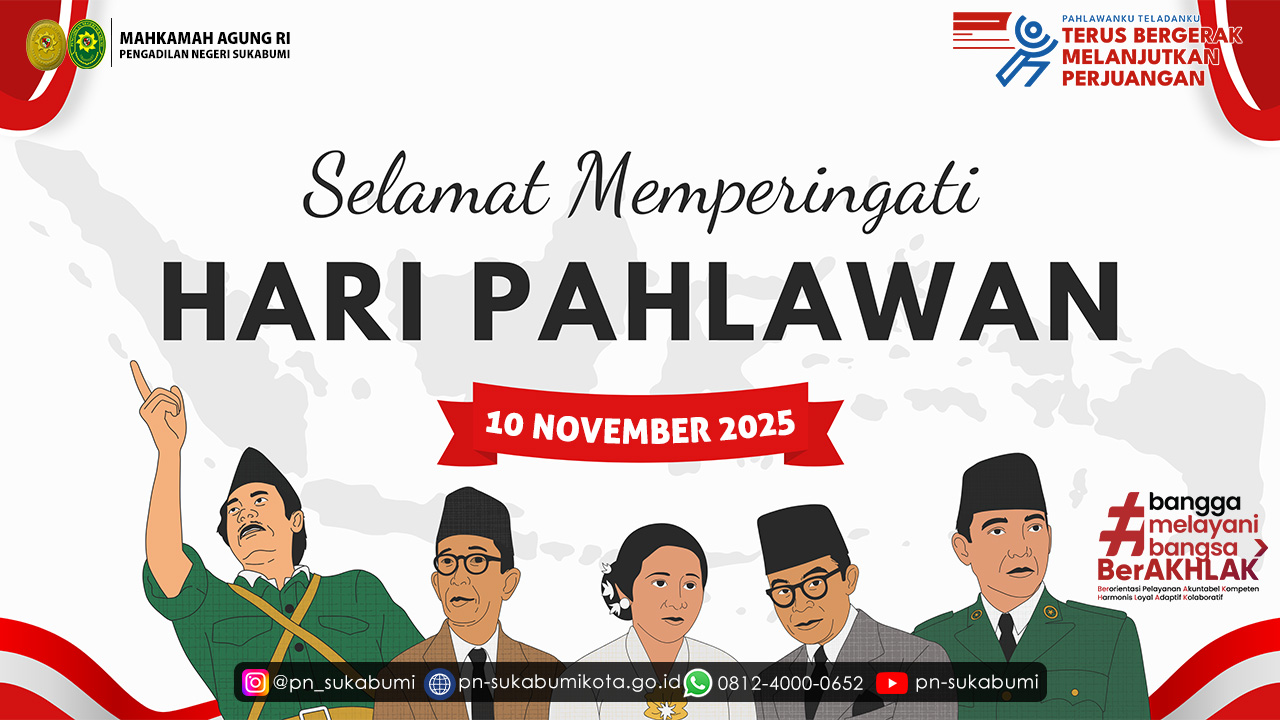 Dalam rangka memperingati Hari Pahlawan, pada hari ini, Senin 10 November 2025 diadakan upacara bendera di halaman kantor Pengadilan Negeri Sukabumi. Bertindak sebagai Pembina Upacara yaitu Hakim, Siti Yuristiya Akuan, S.H., M.H. dan Pemimpin Upacara yaitu Panitera Muda Pidana, Andri Herminanto, S.H., M.H. Dalam kesempatan ini Pembina Upacara membacakan Amanat Menteri Sosial, diserukan kepada seluruh […]