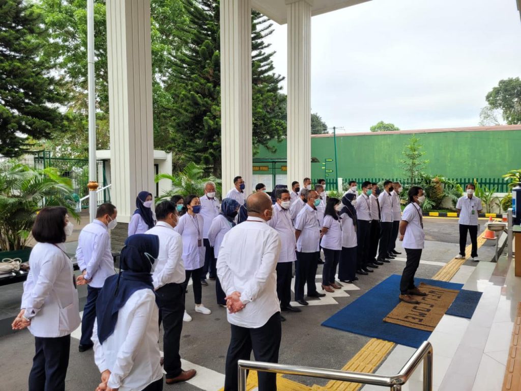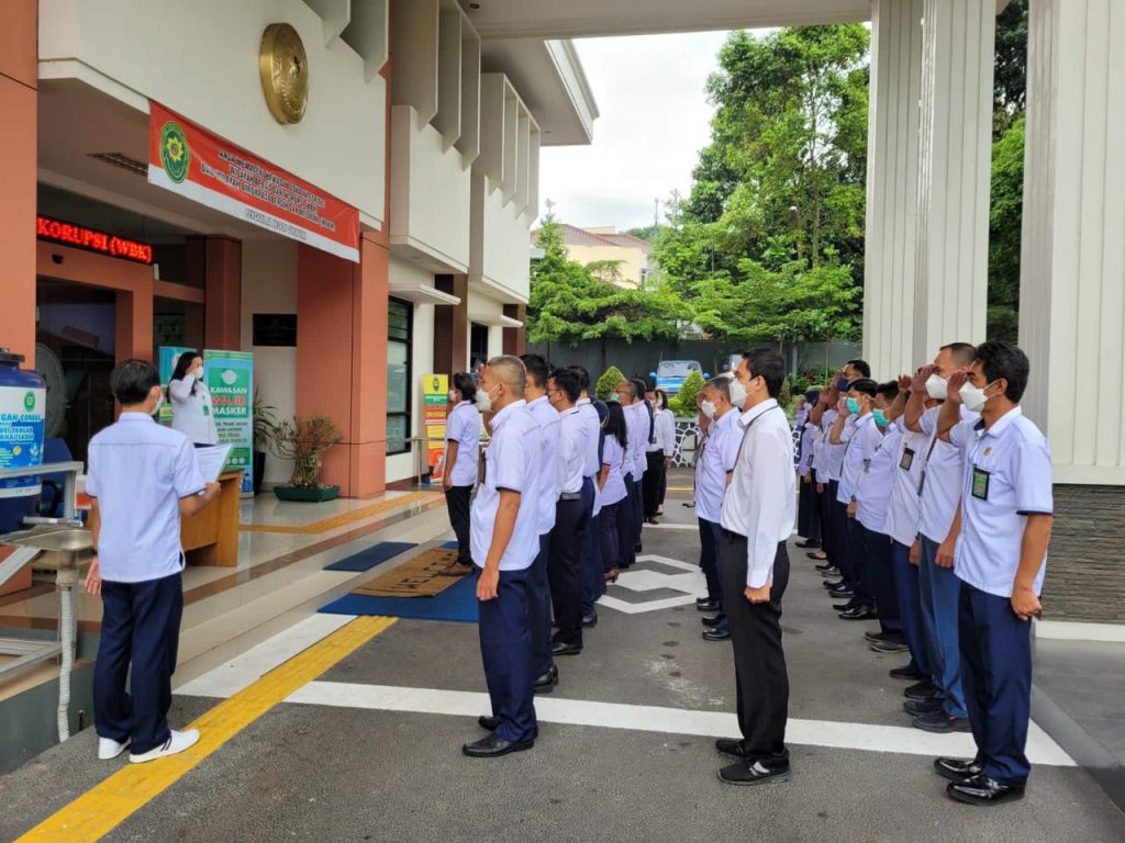 (30 Mei 2022) Rutinitas kegiatan apel pagi hari ini dilaksanakan secara langsung di halaman depan gedung kantor Pengadilan Negeri Sukabumi. Apel dipimpin oleh Ibu Wakil Ketua Pengadilan Negeri Sukabumi, Himelda Sidabalok, S.H., M.H., dan diikuti oleh seluruh aparatur Pengadilan Negeri Sukabumi. Dalam apel, pemimpin apel berpesan agar tetap memperhatikan PERMA nomor 8 dan 9 seluruh pegawai.
