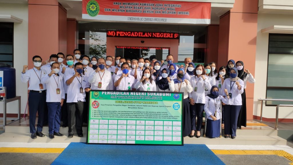 (23 Mei 2022) Pada hari Senin tanggal 23 Mei 2022 dilaksanakan penandatanganan deklarasi stop narkoba oleh Ketua, Wakil Ketua, Sekretaris, Panitera, Hakim dan seluruh Aparatur Pengadilan Negeri Sukabumi. Menurut Ketua Pengadilan Negeri Sukabumi, Yusuf Syamsuddin, S.H., M.H. deklarasi ini sebagai bukti bahwa Pengadilan Negeri Sukabumi berperang melawan narkoba. “Ini pembuktian kepada masyarakat bahwa kami sangat serius terhadap pencegahan penyalagunaan narkoba serta pemberantas dan peredaran gelap narkoba di lingkungan masyarakat, terutama Pengadilan Negeri Sukabumi,” tegasnya.