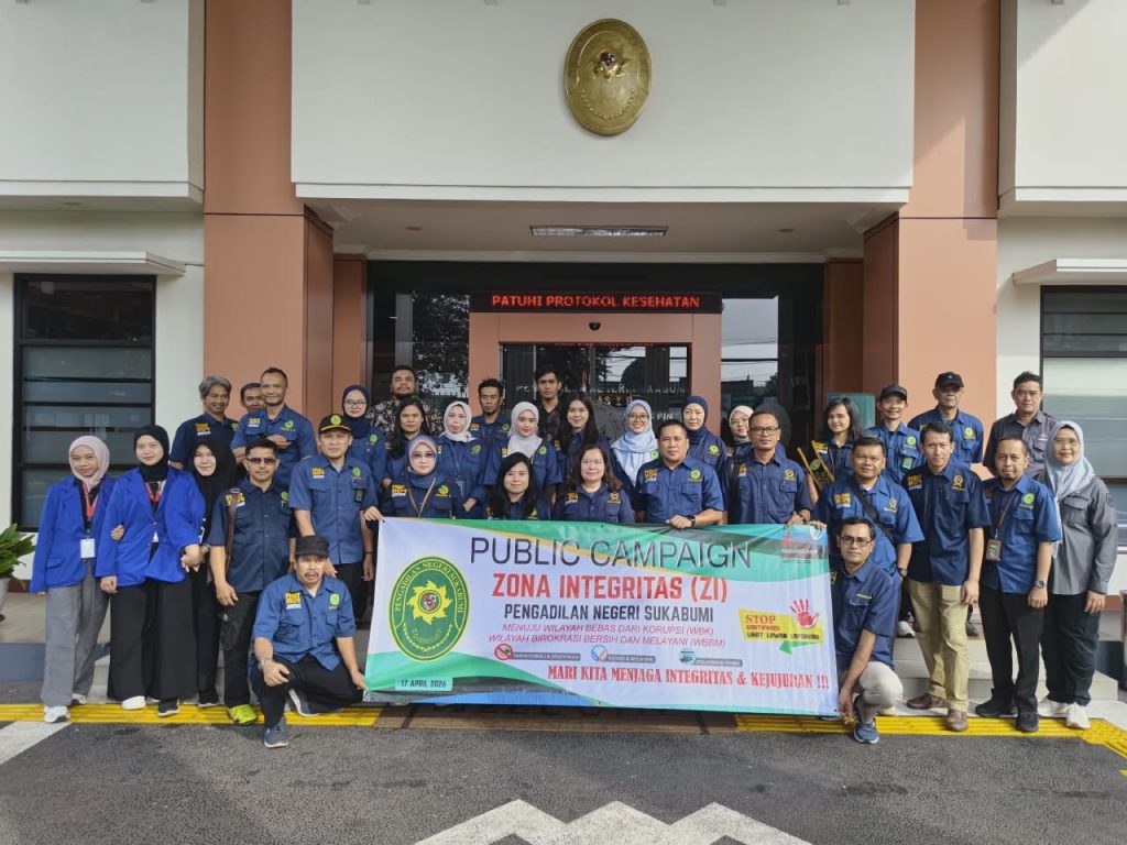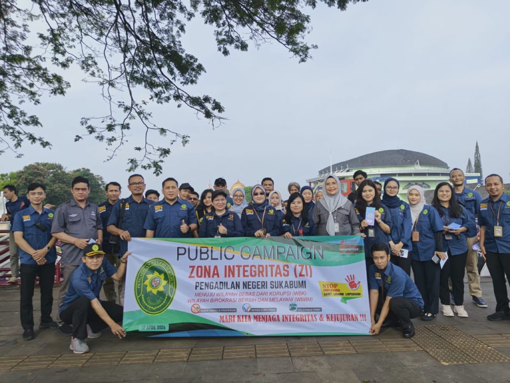 Pengadilan Negeri Sukabumi melaksanakan Public Campaign Zona Integritas Tahun 2026 di Lapangan Merdeka, Kota Sukabumi. Kegiatan ini diharapkan dapat meningkatkan dan memperkuat kepercayaan masyarakat terhadap Lembaga Peradilan khususnya Pengadilan Negeri Sukabumi.