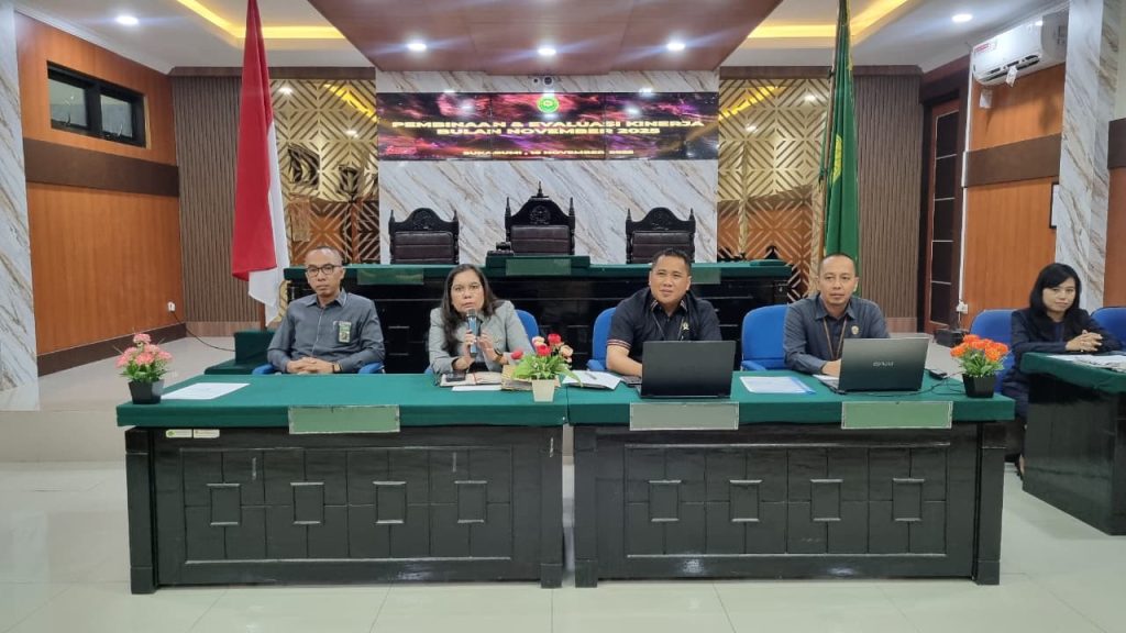 Pengadilan Negeri Sukabumi melaksanakan Rapat Evaluasi Kinerja Bulan November yang diikuti oleh seluruh aparatur pengadilan di Ruang Sidang Utama. Dalam rapat ini, jajaran pimpinan yang terdiri dari Ketua, Wakil Ketua, Sekretaris, dan Panitera memberikan pengarahan kepada seluruh pegawai. Tidak bosan-bosannya diingatkan kepada peserta rapat untuk selalu menerapkan menerapkan PERMA Nomor 7 Tahun 2016 tentang Penegakan Disiplin Kerja Hakim pada Mahkamah Agung dan Badan Peradilan di bawahnya, PERMA Nomor 8 Tahun 2026 tentang Pengawasan dan Pembinaan Atasan Langsung di Lingkungan Mahkamah Agung dan Badan Peradilan di bawahnya, dan PERMA Nomor 9 Tahun 2016 tentang Pedoman Penanganan Pengaduan (Whistle Blowing System) di Mahkamah Agung dan Badan Peradilan di Bawahnya.